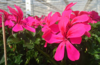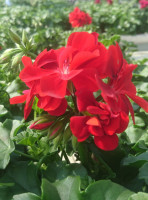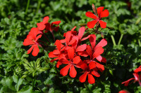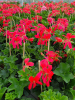 Hier blüht es richtig schön - und zwar das ganze Jahr über, mit immer neuen Blüten. Im Frühjahr erfreuen uns Primeln und Stiefmütterchen, die zusammen mit Bellis, Vergissmeinnicht, Ranunkeln und Osterglocken den Frühling einläuten. Im Sommer steht mit zahlreichen Sorten die Geranie im Mittelpunkt - ob bei Dauerregen oder starker Hitze, als robuste Sommerpflanze ist sie immer noch der Star unter den Balkonpflanzen. Zu den "Sommer-Top-10" gehören aber auch Hängepetunien, Bidens, Verbenen, Schneeprinzessin und viele mehr. Die ganze Bandbreite der Sommerblüher bieten wir in immer wieder neuen Sorten und Farben ab Mitte April an. Im Herbst leuchten Viola, Chrysanthemen, Astern, Silberblatt und andere um die Wette und auch im Winter muss der Balkonkasten nicht leer bleiben, hier bringen Christrosen, Silberkörbchen, Erica und Calluna Farbe auf den Balkon.