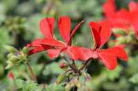 Hier blüht es richtig schön - und zwar das ganze Jahr über, mit immer neuen Blüten. Im Frühjahr erfreuen uns Primeln und Stiefmütterchen, die zusammen mit Bellis, Vergissmeinnicht, Ranunkeln und Osterglocken den Frühling einläuten. Im Sommer steht mit zahlreichen Sorten die Geranie im Mittelpunkt - ob bei Dauerregen oder starker Hitze, als robuste Sommerpflanze ist sie immer noch der Star unter den Balkonpflanzen. Zu den "Sommer-Top-10" gehören aber auch Hängepetunien, Bidens, Verbenen, Schneeprinzessin und viele mehr. Die ganze Bandbreite der Sommerblüher bieten wir in immer wieder neuen Sorten und Farben ab Mitte April an. Im Herbst leuchten Viola, Chrysanthemen, Astern, Silberblatt und andere um die Wette und auch im Winter muss der Balkonkasten nicht leer bleiben, hier bringen Christrosen, Silberkörbchen, Erica und Calluna Farbe auf den Balkon.