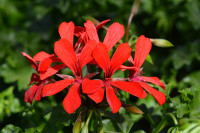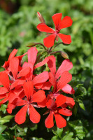 Die Sorte 'Super Cascade Red' gehört zu den lang hängenden Geranien. Diese kann eine Länge von bis zu 80 cm erreichen und die großen leuchtend roten Blüten zeigen sich über den ganzen Sommer hinweg. Ganz praktisch: die Blütenblätter fallen von alleine ab, sobald sie welk sind. Es ist also kein Ausputzen nötig.
