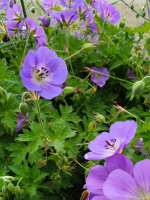Der Storchenschnabel 'Rozanne' ist eine echte Besonderheit unter den Storchenschnäbeln, denn er blüht unermüdlich von Mai bis zum Frost. Erst im Jahre 2000 als Neuzüchtung vorgestellt, hat 'Rozanne' schnell das Gärtnerherz erobert und ist nicht mehr aus dem Staudengarten wegzudenken. Auch Bienen erfreuen sich an den zahlreichen, zarten, violettblauen Blüten, sodass die schöne Staude nicht nur für den Gartenfreund ein Zugewinn ist. 'Rozanne' liebt sonnige-halbschattige Lagen und nahrhafte, durchlässige, frische Böden, bekommt sie eine Klettermöglichkeit arbeitet sie sich mit ihren zarten Trieben bis auf eine Höhe von 80 cm hinauf, sonst wächst sie bodendeckend und wird dann wesentlich breiter als hoch.