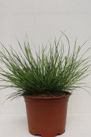 Das Zwerg-Lampenputzergras 'Little Bunny' hat seinen Namen nicht von ungefähr, es ist zierlich klein und bringt zahlreiche lampenputzerartige Blütenwedel hervor. Sie erscheinen ab Juli und halten bis weit in den Winter hinein, dabei wechseln sie die Farbe von grünbraun, zu gelblichbraun und sind zart und weich. Das Gras selbst hat schmale, grüne Blätter, die sich im Herbst goldgelb färben, es wird gerne breiter als hoch und liebt sonnige Lagen. An den Boden stellt es nur wenige Ansprüche, gut durchlässig sollte er sein und nicht zu nährstoffarm, auch im Steingarten kommt das aparte Gras gut zurecht. Ein Rückschnitt empfiehlt sich erst im Frühjahr, wenn sich unten langsam erste grüne Blattspitzen zeigen, kann der trockene, braune Teil heruntergeschnitten werden. Mit nur 30 cm Höhe bleibt 'Little Bunny' wirklich klein, es passt sowohl in den vorderen Beetbereich, in den Trog und in den Steingarten.