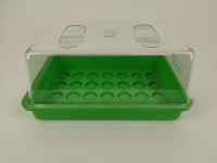 Die Aussaatschale kann mit einer passenden Abdeckhaube zu einem vollständigen Zimemrgewächshaus für die Fensterbank werden.