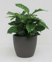 Jeder kennt ihn - den Kaffee - und fast jeder liebt ihn, den Muntermacher am Morgen, ohne den Viele ihren Tag nicht beginnen möchten. Ein Großteil der weltweiten Kaffee-Ernte geht auf Coffea arabica zurück. Die Kaffeepflanze selbst ist eine hübsche, immergrüne Pflanze, die in unseren Breiten nur als Zimmerpflanze gehalten werden kann, im Frühjahr begeistert sie mit stark duftenden Blüten, setzt aber in Zimmerkultur nur seltenst Früchte an. Sie ist nicht ganz pflegeleicht, besonders weil sie eine hohe Luftfeuchte von über 50%, gerne um die 70% liebt. Helle Plätze ohne direkte Sonne bei 18-22°C sind ideal,im Winter darf es sogar leicht kühler um die 16-18°C sein, dann legt die Kaffeepflanze eine Winterruhe ein und setzt im Frühjahr besser Blüten an. Wer ihr das bieten kann, hat sicher lange seine Freude mit der schönen Pflanze, ihre glänzend grünen Blätter sind einfach schön und die weißen Blüten verströmen einen starken Duft. Bei richtig guter Pflege werden Kaffeepflanzen auch im Topf bis zu 2 Meter hoch, aber auch als kleine Topfpflanze macht sie Freude und ist ein schönes Mitbringsel für echte Kaffee-Fans.