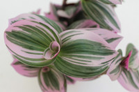 Die Tradescantia 'Nanouk' ist eine seltene Zimmerpflanze, die durch ihre leuchtenden Blattfarben ins Auge fällt. Das grün-weiß-panaschierte Blatt leuchtet zusätzlich in rosa- und pinktönen und sieht einfach wunderschön aus. 'Nanouk' liebt es hell, aber ohne direkte Sonne und verträgt es eher einmal zu trocken als zu nass. Mit der Zeit kippt die Pflanze über und kann dann auch in eine Ampel gepflanzt werden. Sie verträgt aber auch einen Rückschnitt, dann treibt sie immer wieder buschig durch und bleibt kompakter.