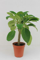 Peperomia 'Velvet Tree' ist eine eher seltene Zimmerpflanze, die mit ihrem samtigen Blatt einen zarten, weichen Charme versprüht. Auf einem Stämmchen gezogen hat ihr das den Namen 'Velvet Tree' (Samtbaum) eingebracht. Sie mag helle Standorte ohne direkte Sonne und lockere, gut durchlässige Substrate. Sie muss regelmäßig gegossen werden, sollte aber zwischendurch leicht abtrocknen, denn nasse Füße hat die Peperomia nicht gerne. Du suchst eine Peperomia 'Velvet Tree'? Als Rarität haben wir die Pflanze nicht immer zur Verfügung, frage sie aber gerne bei uns an, vielleicht ist sie gerade verfügbar, wenn nicht tun wir unser Bestes sie für Dich zu bekommen.